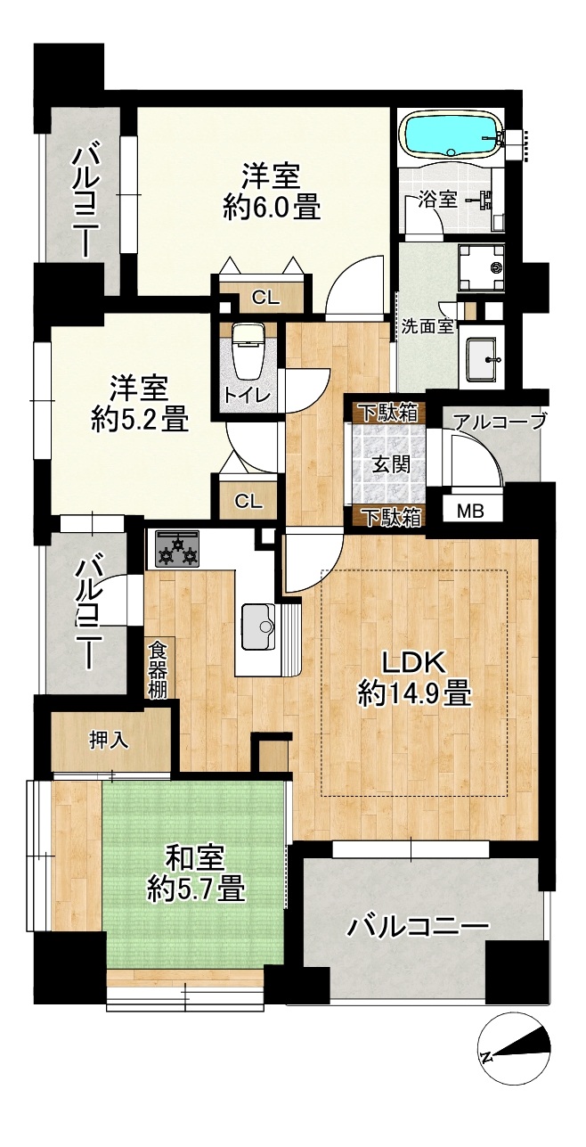 • ・和室(約5.7帖)は小さなお子さまの遊び場や